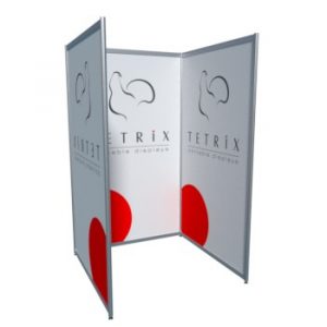 The TETRIX SuperFlatⓇ graphic canvases can be rolled has a top level print resolution and travels in a 150cm tube with the stand. All systems can be made double sided and the printed messages are easy and cheap to update. And the very best thing is the functionality. No tools or prior knowledge are needed. You can change the appearance of your stand from event to event – make it smaller, or bigger, or change form from event to event.